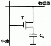 写入时,字线为高电平使T导通,若数据线上为高电平,经T管对Cs充电使其存“1”;若数据线为低电平,则Cs经T放电,使其无电荷而存“0”。