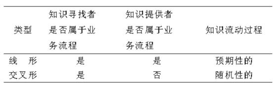 根据知识流动的方向是否与业务流程问题解决方向一致,“内向型”知识流动又可分为线形和交叉形两种。