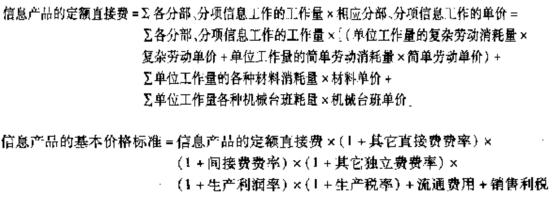 在信息商品价格构成要素中,信息生产费用和信息流通费用是构成信息商品价格的基础,信息的盈利水平则是影响信息商品价格变动的主要因素。而在信息生产费用和信息流通费用中,信息生产费用是主体,信息流通费用是以信息生产费用为基础按一定费率计算的,信息流通费用率是行业主管部门选择若干典型的信息商品,根据其在生产和流通过程中各种费用的实际发生额测定的。由此可见确定信息商品价格的核心工作是确定信息生产费用。
