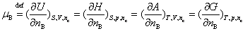 组分B的偏摩尔吉布斯函数定义为组分B的化学势: