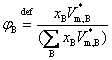式中表示在一定温度、压力下纯物质B的摩尔体积。故物质B的体积分数等于混合前纯B的体积与混合前各纯组分体积总和之比。